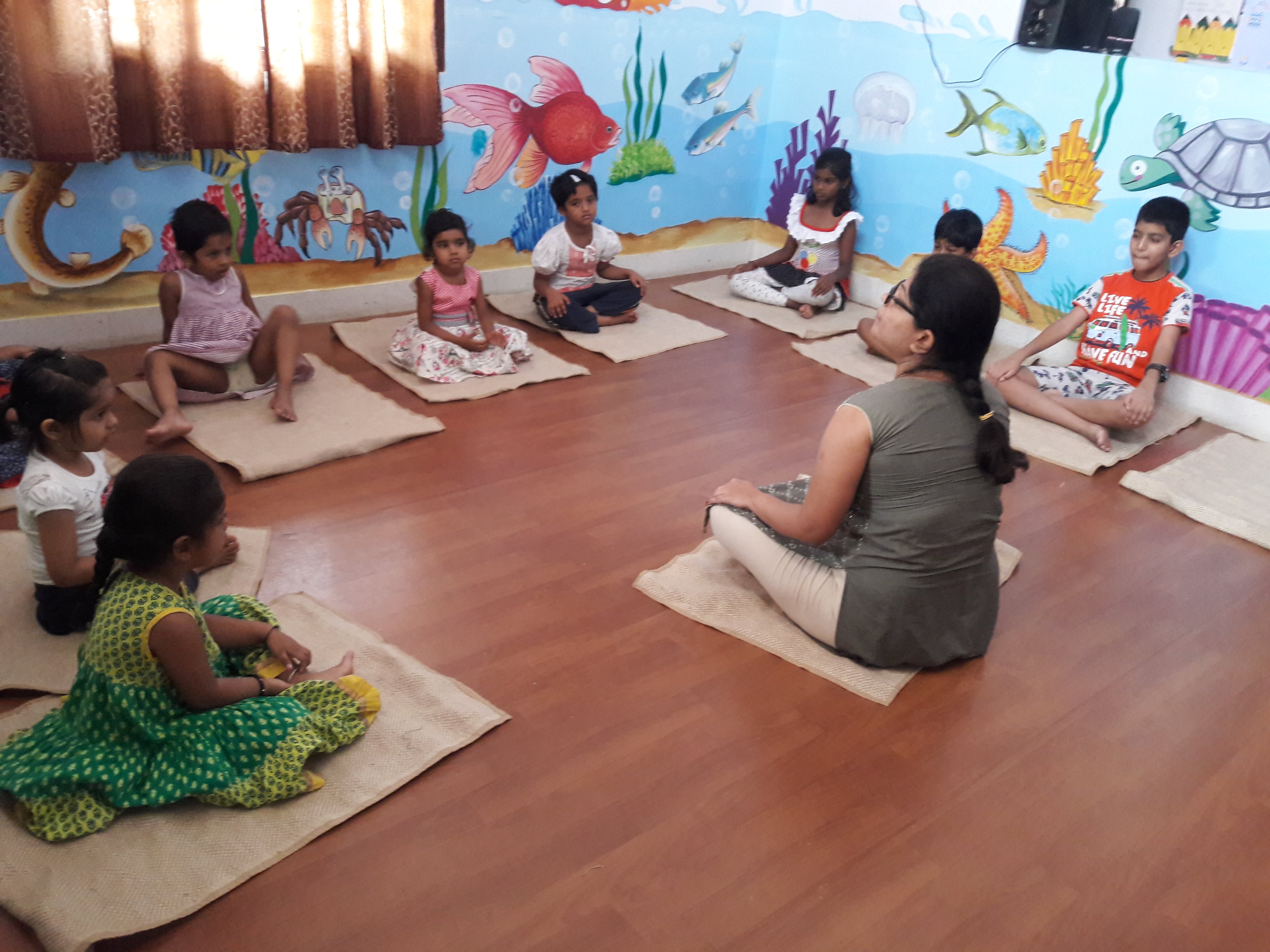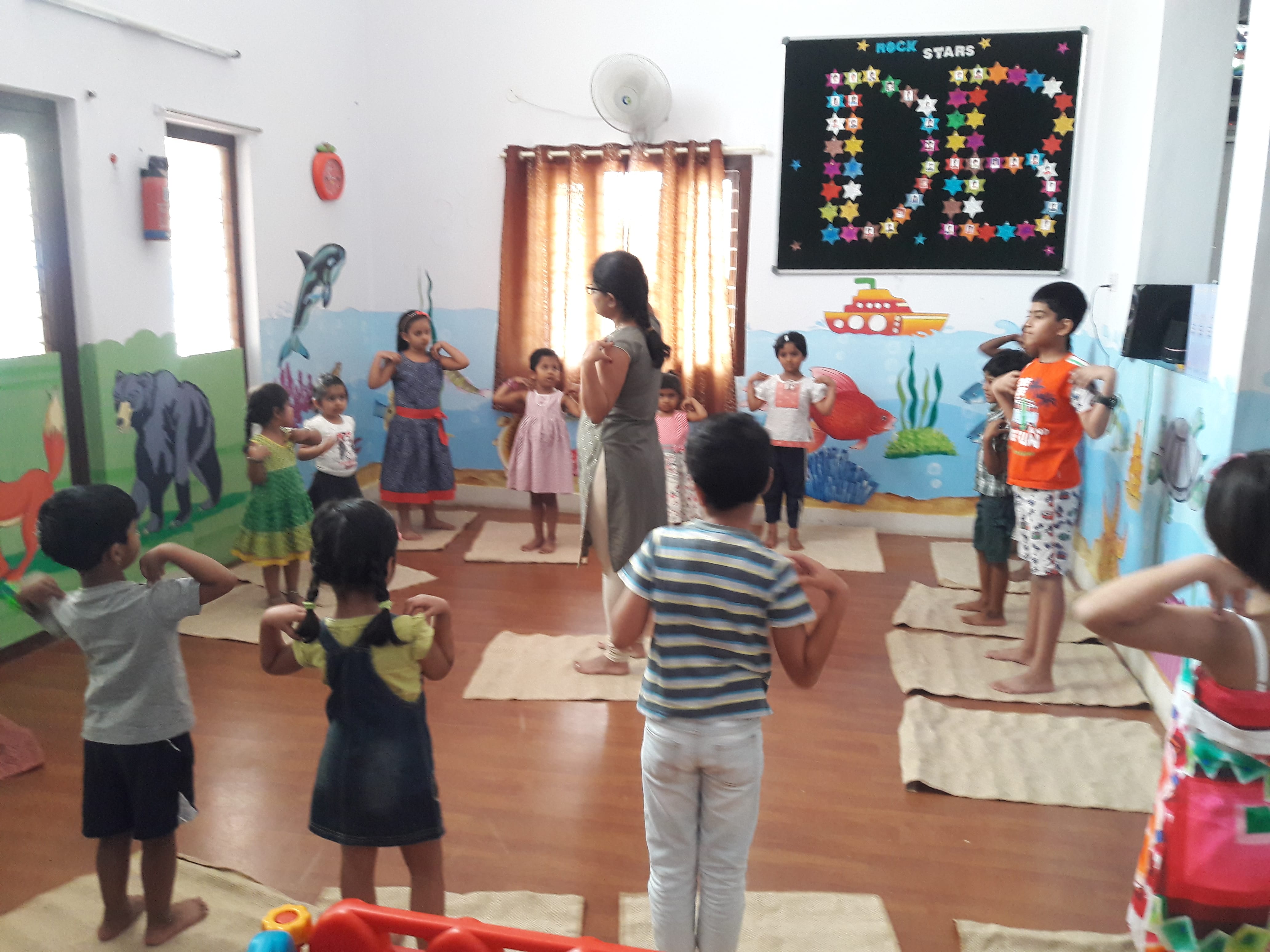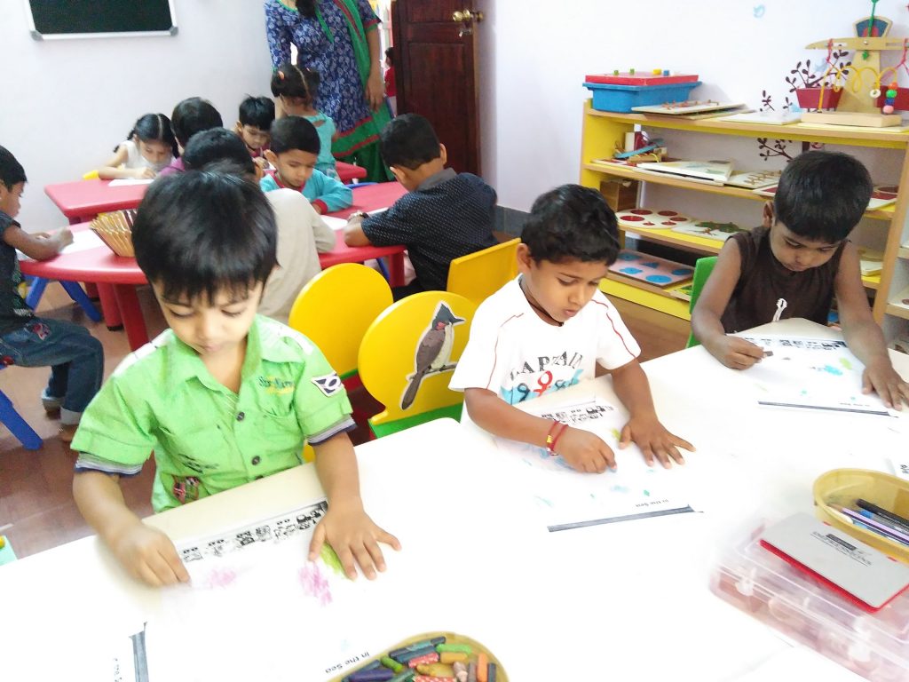 Curriculum consists of Language rich, Play based learning, Fine Motor, Prewriting,Gross Motor, Maths, Science, Reasoning, Creative Art and Craft, Music and Dance,Yoga, Meditation, Exercise etc.
