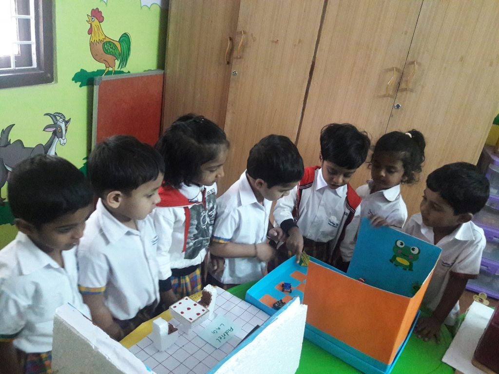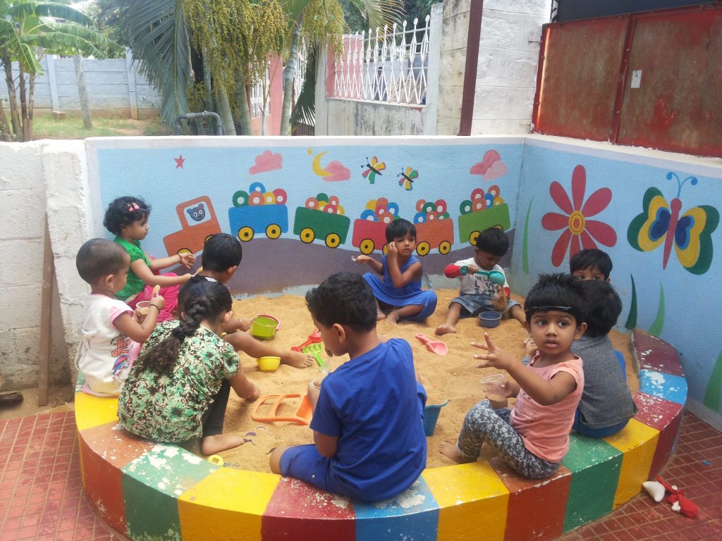 Homely and Hygienic Environment.Spacious, Ventilated and colourful classrooms, Separate Library and Art area.We have well equipped Play area, Sand pit, Dancing Floor and Playground.